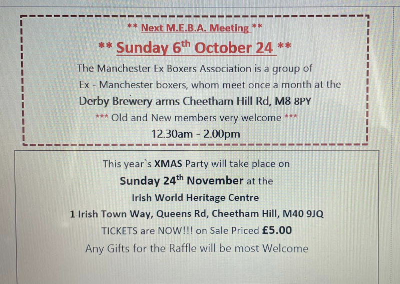From all the committee at Manchester Ex Boxers Association.